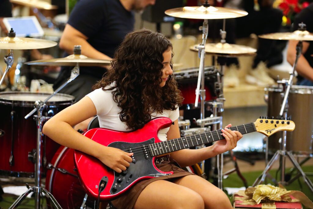 Acreditamos que as experiências em conjunto enriquecem a formação musical ao inspirar e motivar o desenvolvimento da confiança, criatividade e colaboração. Além das práticas em banda, realizamos duas apresentações, onde os alunos vivenciam a energia do palco e desenvolvem sua musicalidade de forma completa.